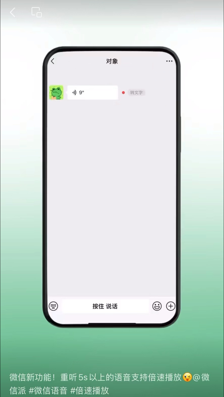 1、微信语音条播放重听或转文字后,可以倍速播放;