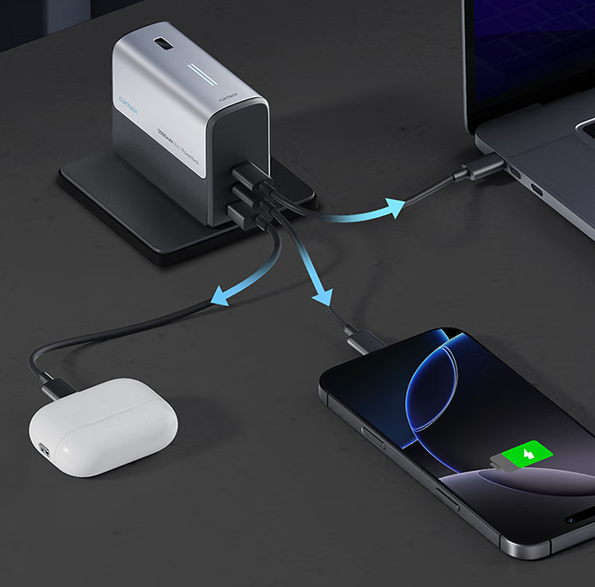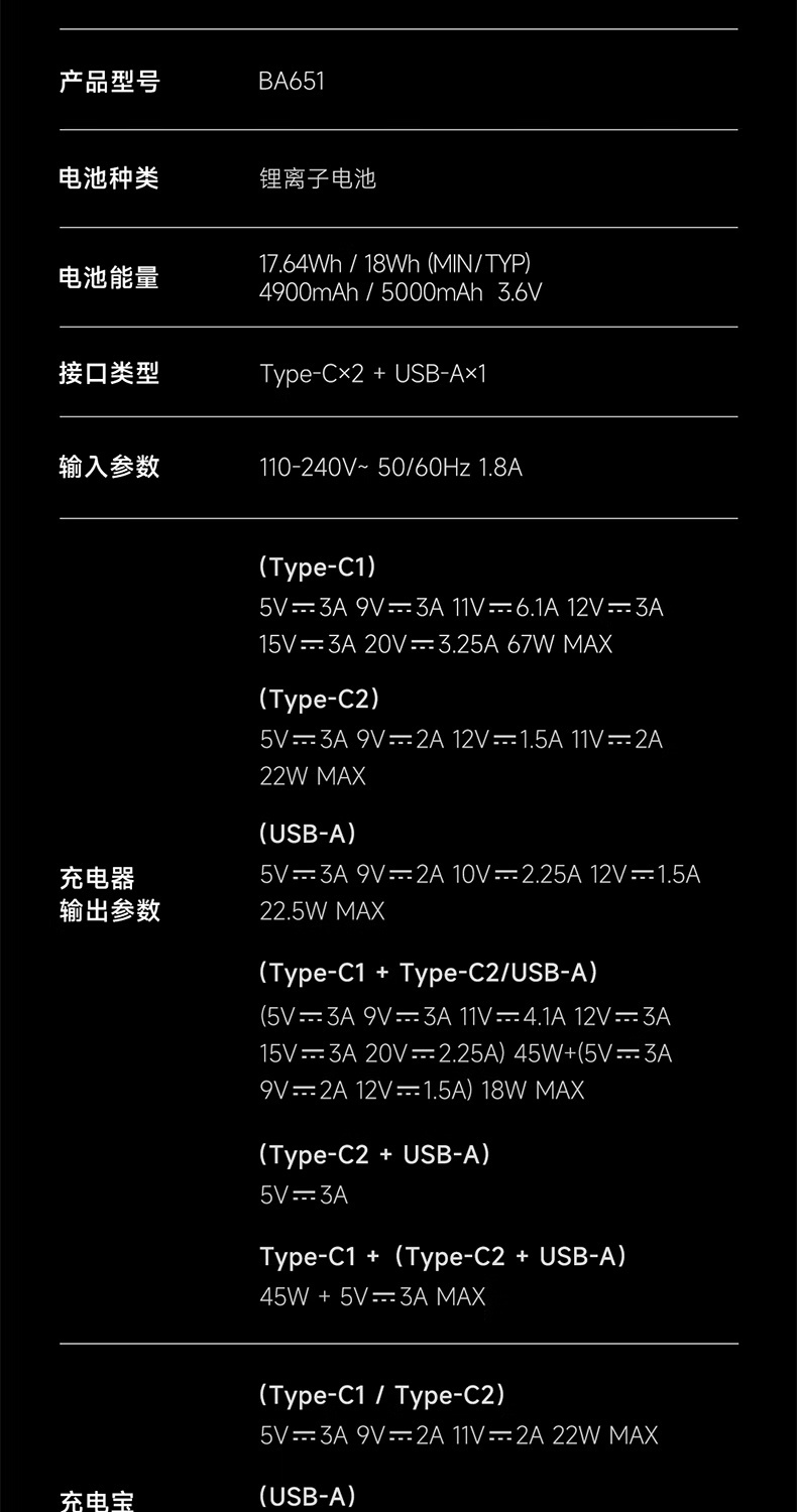该款电能块支持 ADC 2.0 自适应快充,兼容多协议,具备动态功率分配能力。能量块采用氮化镓技术 + 旁路充电技术,支持三口同充,宣称“一次充能,4 台满电”。