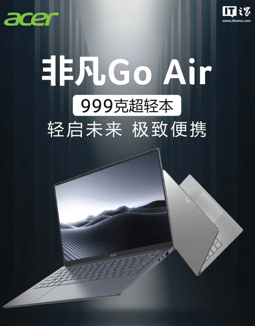 IT之家 1 月 15 日消息,宏碁今日发布了非凡 Go Air 笔记本,重量只有 999g 不到一公斤,定价 4999 元,国补到手价 3999.2 元。