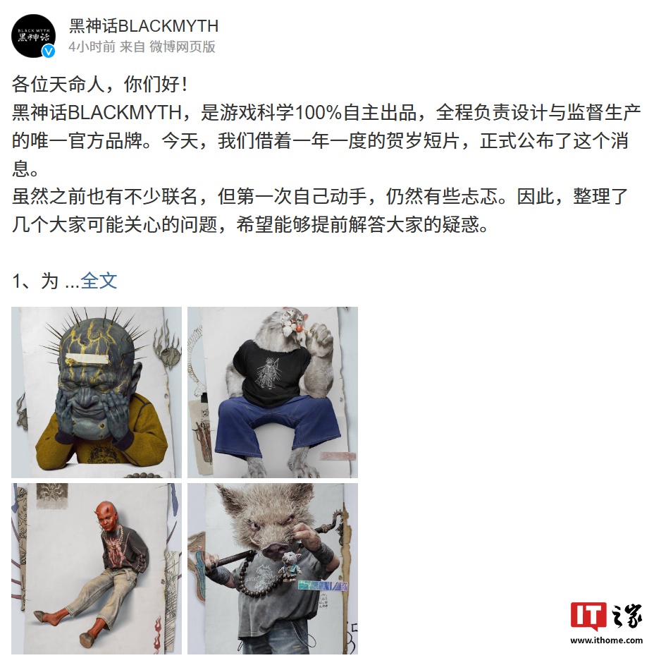 IT之家注意到,“黑神话 BLACKMYTH”品牌已开通官方微博,并就用户可能关心的问题进行了解答。