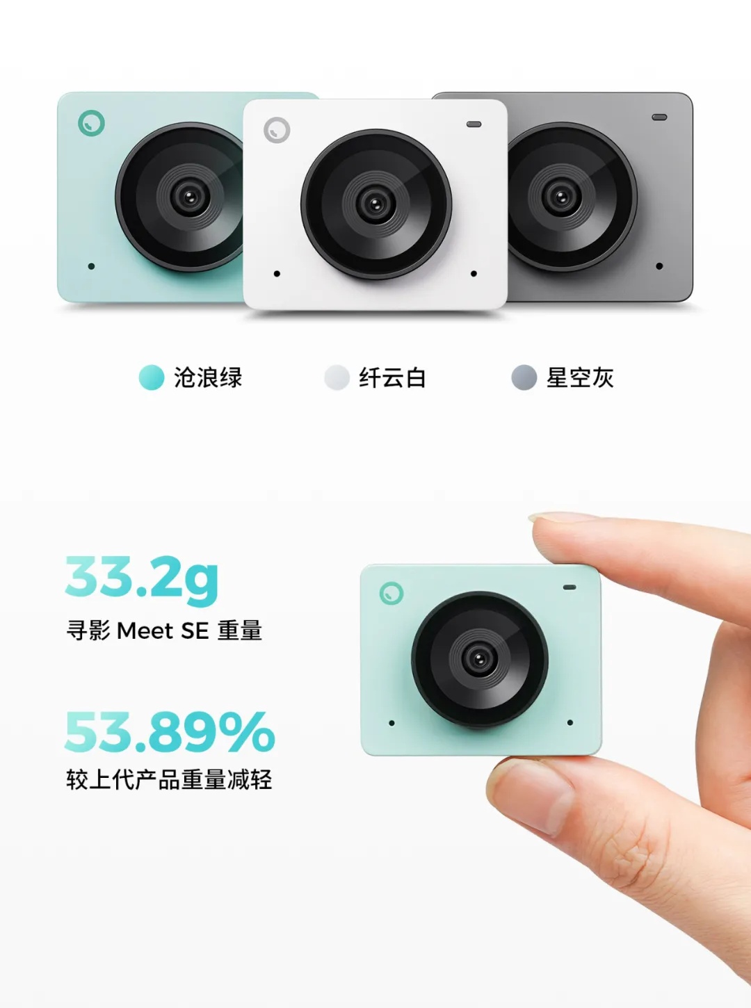 这款摄像头有星空灰、纤云白、沧浪绿三种颜色可选,重约 33.2g;支持 1080P 100fps 与 720P 150fps 视频录制。