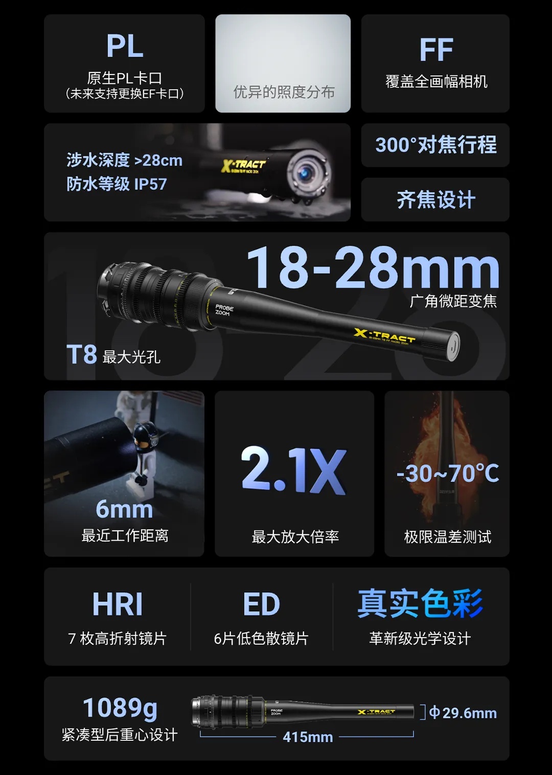 IT之家 1 月 15 日消息,DZOFILM 今晚发布了萃系列 18-28mm T8 0° 广角探针变焦镜头,官方称其为全球首款探针变焦镜头,售价 24999 元。