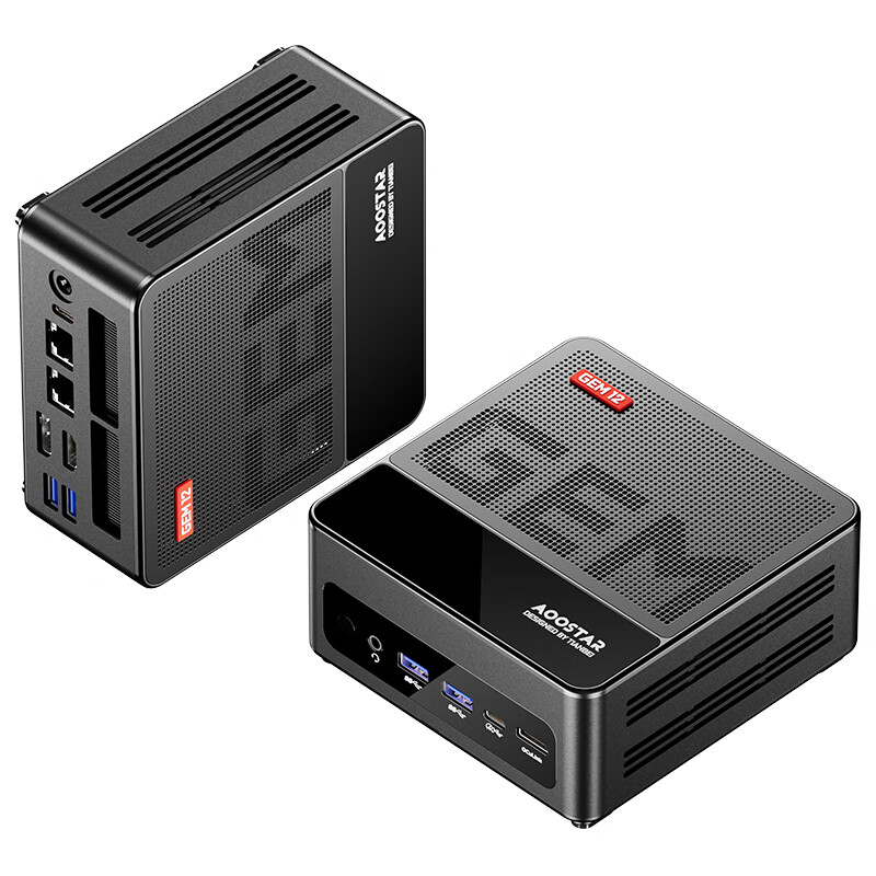 天钡 GEM12 Max 迷你主机可安装双 2280 固态硬盘;支持双通道 DDR5 5600MHz 内存,单条最高支持 64GB;支持 Wi-Fi6,搭载双 2.5G 网口。