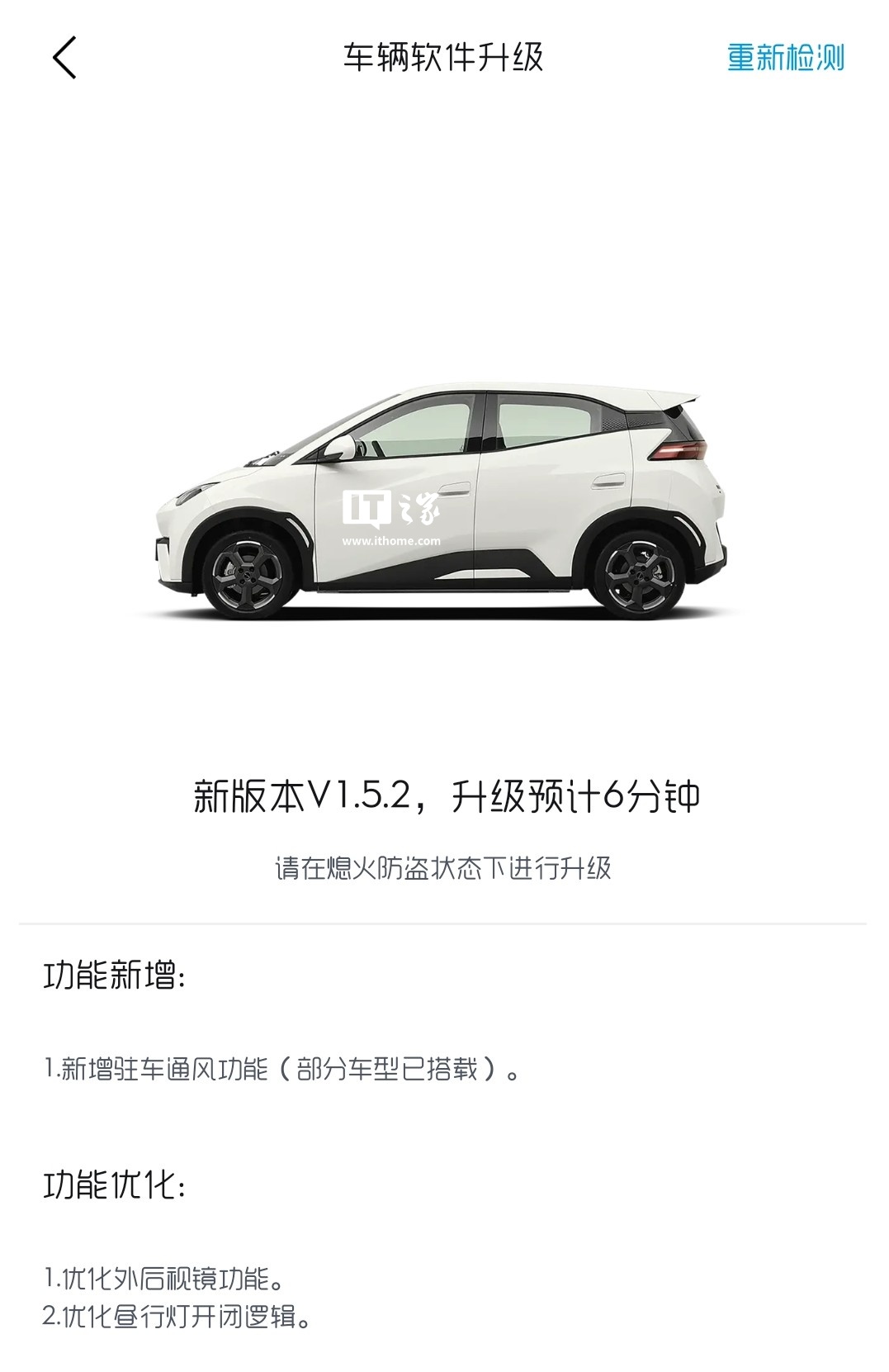 IT之家 1 月 16 日消息,根据用户反馈,比亚迪海鸥车型收到了最新的 V1.5.2 版本系统 OTA 升级,新增功能包括: