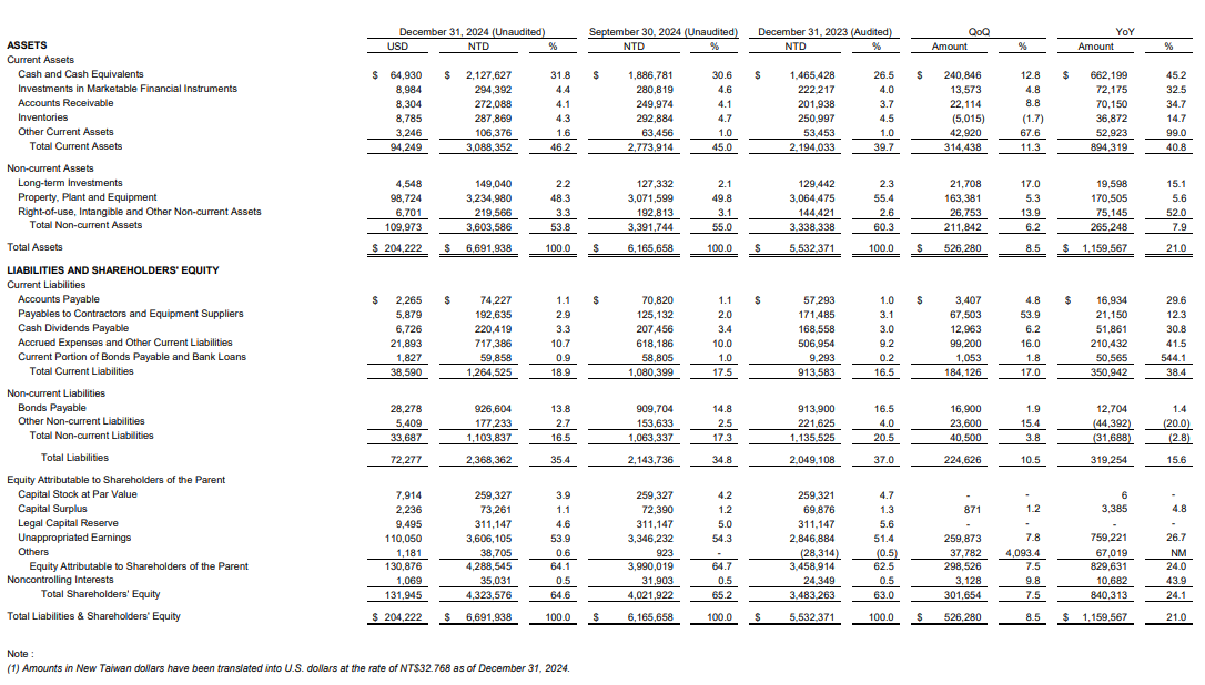 IT之家 1 月 16 日消息,台积电刚刚公布了截至 2024 年 12 月 31 日的第四季度及全年财务报告,IT之家汇总 Q4 重点数据如下: