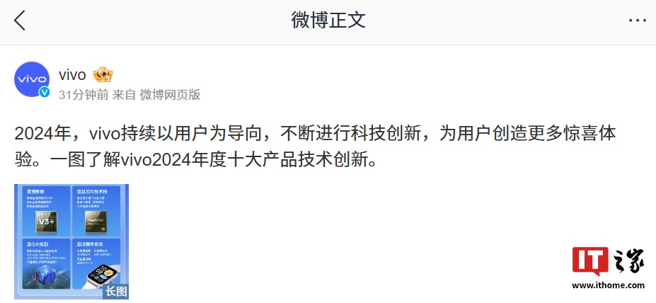 IT之家附 vivo 2024 年度十大产品技术创新内容如下: