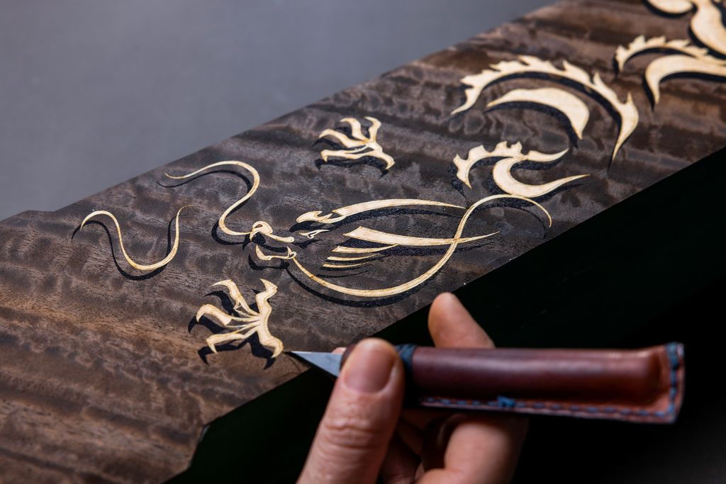 “幻影龙”的车内装饰充满了龙的元素。仪表板上镶嵌着由四种不同木材制成的 297 块木片,拼成精美的龙纹图案,耗时三个月才完成。IT之家附上相关图片如下: