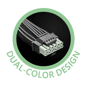 其 12V-2×6 模组线材采用异色端子设计:主体部分为黑色,前端则为抹茶绿;用户可轻松根据色差判断是否完全插入。