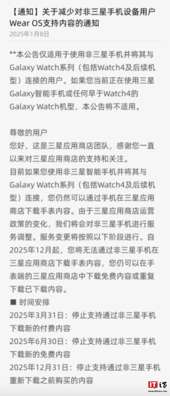2025 年 12 月 31 日后:非三星品牌手机将无法通过三星应用商店为手表下载此前已购内容