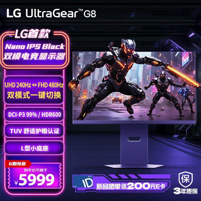 它采用了 27 英寸第六代 Nano IPS Black 面板,经 VESA DisplayHDR 600 认证,可支持 4K@240 Hz 或 1080p@480 Hz 双模。
