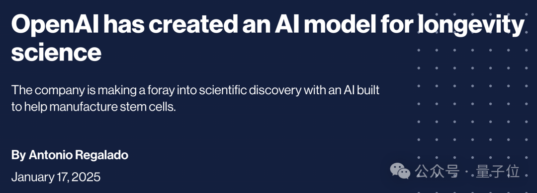 本文来自微信公众号:量子位(ID:QbitAI),作者:梦晨、西风,原标题《多活十年!OpenAI 为研究长寿推出 GPT-4b,联手清华大牛丁胜搞“细胞重编程”,奥特曼本人投资》