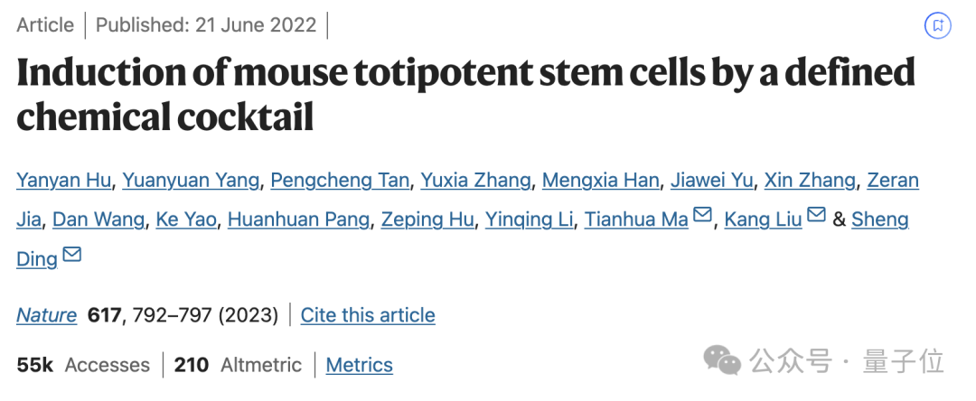 丁胜教授团队首次以化学小分子组合体外定向诱导小鼠全能干细胞并稳定培养,成果在 2022 年登上 Nature。