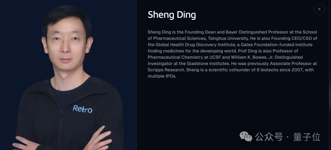 联合创始人丁胜,为清华药学院创始院长(于 2022 年 6 月卸任院长,仍继续在药学院任教并从事研究工作)。