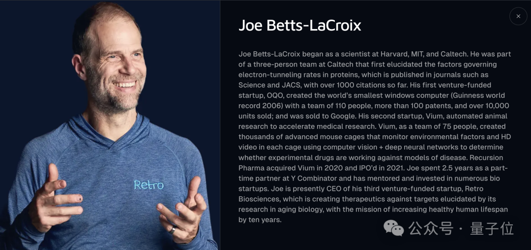 研究合作方 Retro Biosciences,一家成立于 2022 年的创业公司,专注于“抵抗细胞衰老的新药开发”,包括细胞重编程、自噬和受血浆启发的疗法。