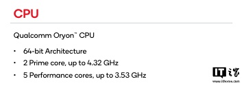 这款新处理器的周边与常规版本基本一致,依旧是 X80 5G、FastConnect 7900 配套芯片,CPU 频率也是 4.32GHz+3.53GHz。然而仔细来看,新处理器的 CPU 核心数却是 2 大 + 5 小,原版则是 2 大 + 6 小,也就是说去掉了一个“性能内核”。