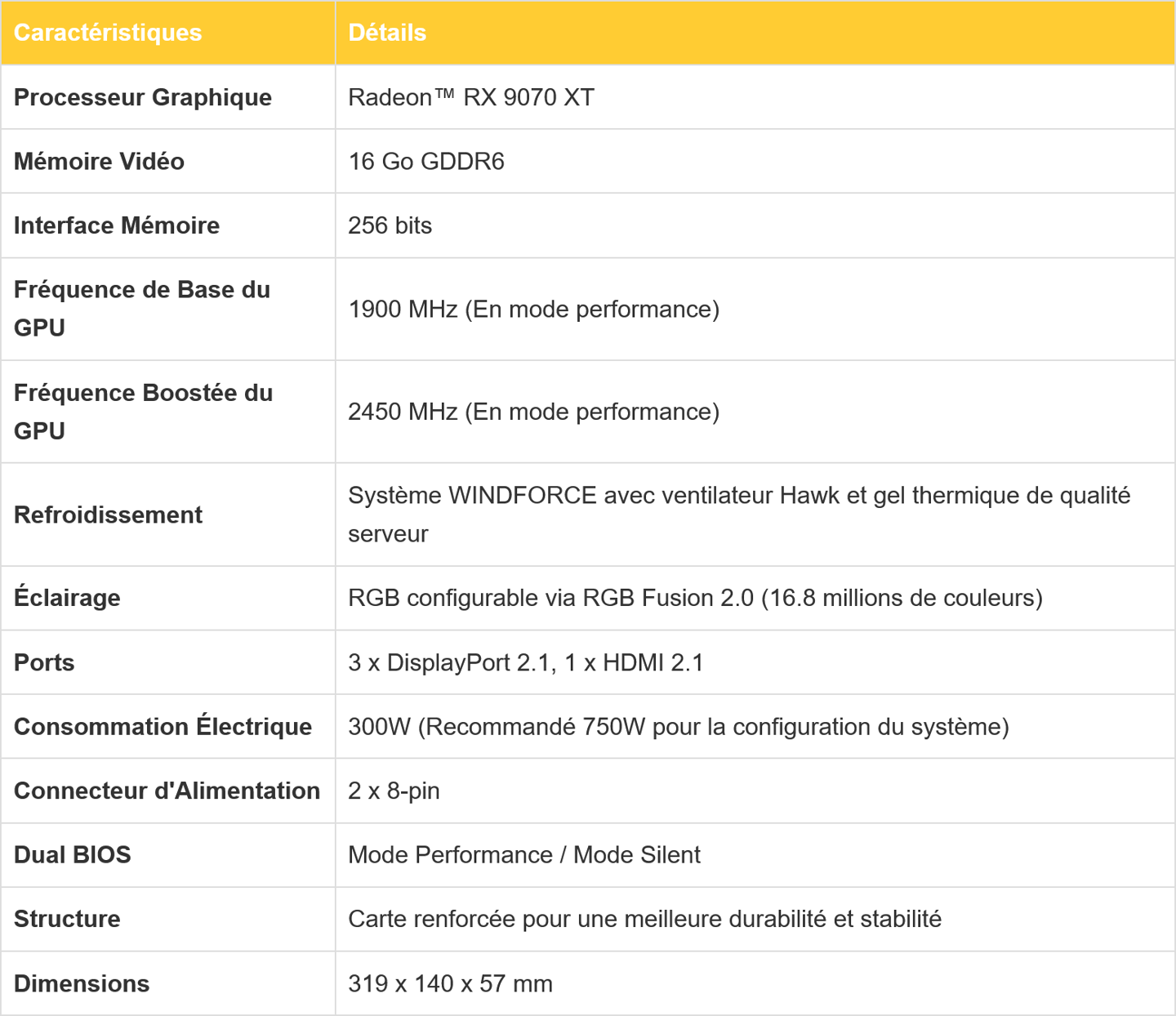 该经销商宣称技嘉 Radeon RX 9070 XT GAMING OC 显卡 319×140×57 mm,约三槽厚度,配备 256bit 位宽 16GB 容量 GDDR6 显存,采用双 PCIe 8-Pin 供电,功耗 300W。