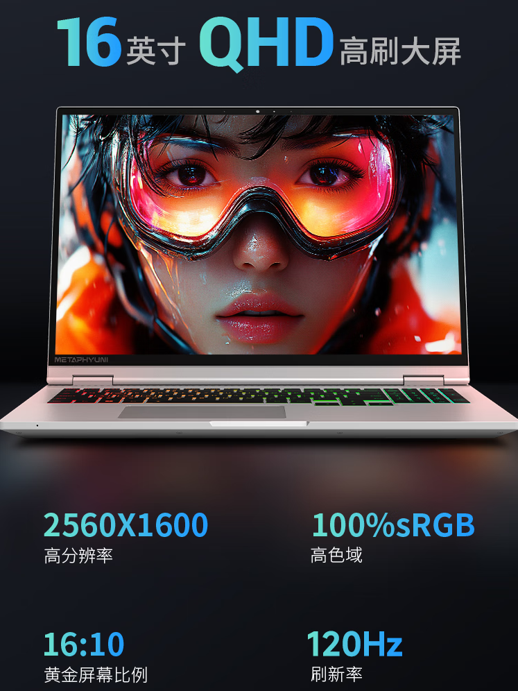 据介绍,玄派玄极星 16 笔记本新增配置采用纤薄机身设计,厚度约 18.9mm、重约 2kg,使用飒雪银配色。该电脑配备 16 英寸 QHD 屏幕,分辨率 2560×1600、支持 120Hz 高刷、覆盖 100% sRGB 色域。