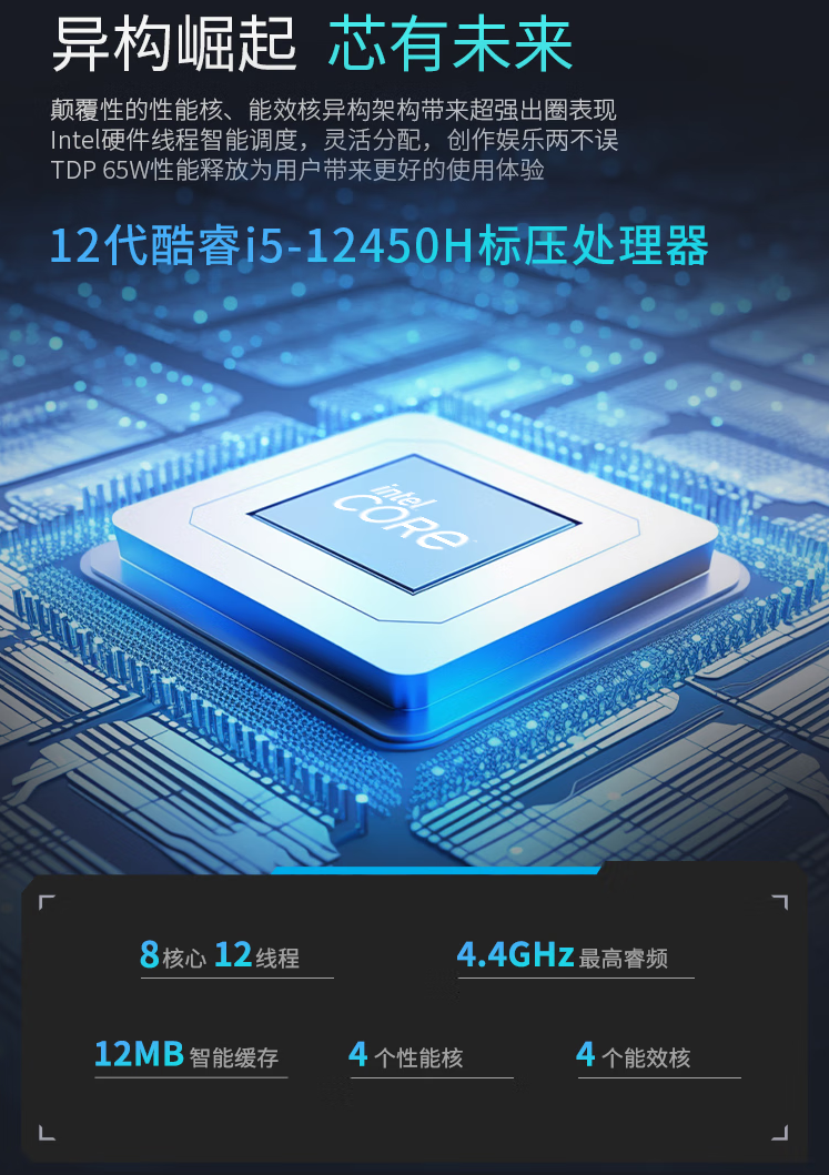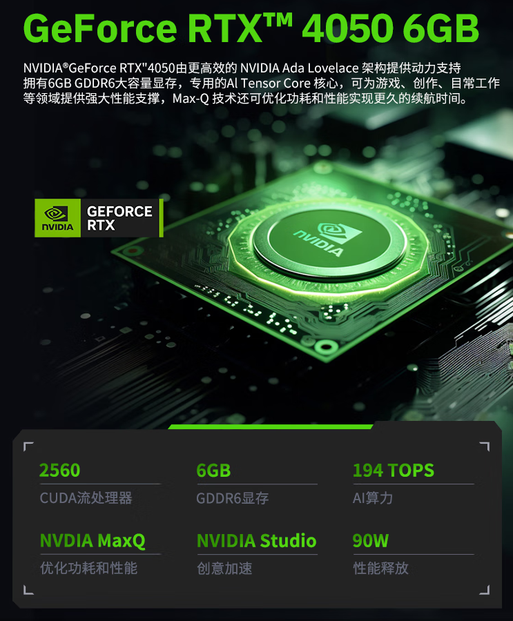 该款笔记本搭载 Intel 12 代酷睿 i5-12450H 处理器(65W 性能释放、8 核心、12 线程),辅以 GeForce RTX 4050 6GB 独显(90W 性能释放)。电脑键盘拥有专属性能模式按钮,支持独立控制、切换。