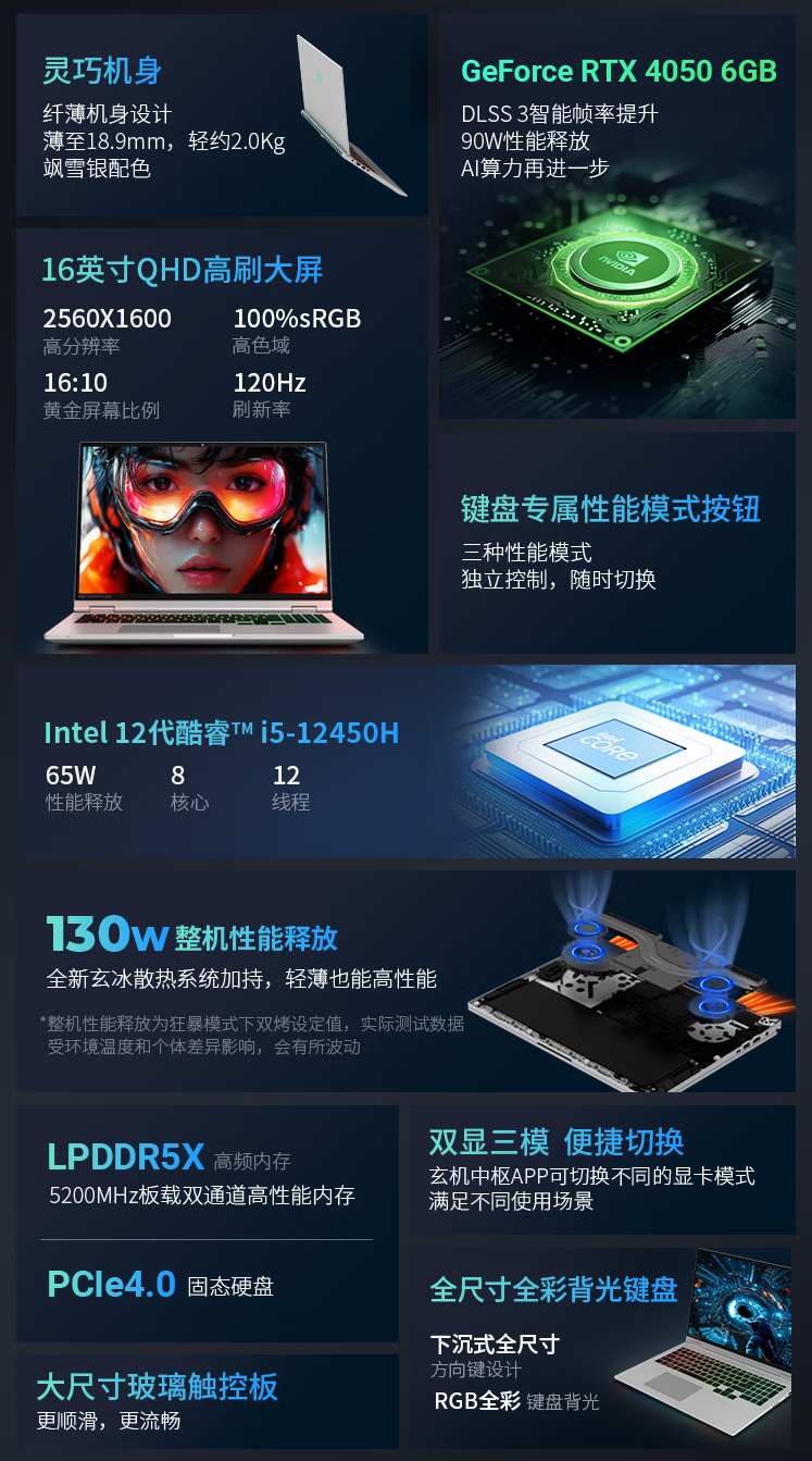IT之家 1 月 20 日消息,玄派玄极星 16 笔记本今日正式开售,该款笔记本现新增 i5-12450H 处理器 + RTX4050 独显版本,宣称拥有 130W 性能释放,首发 5999 元。