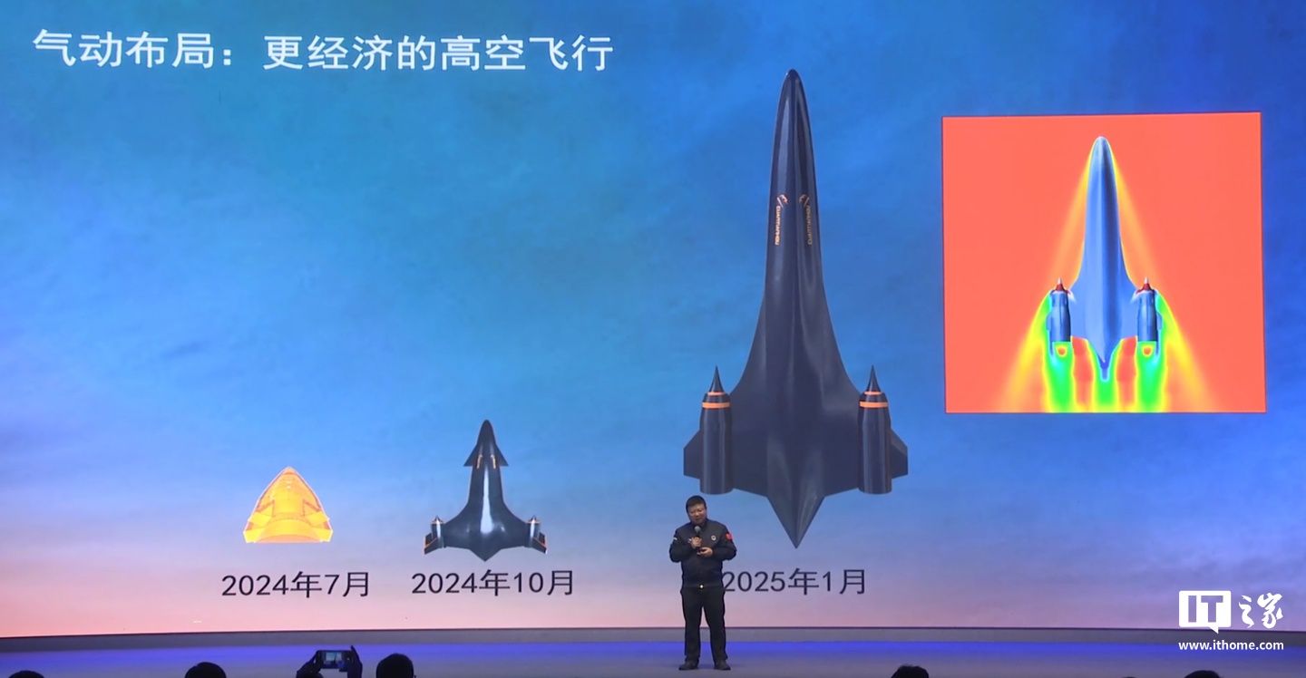 IT之家注意到,四川凌空天行还公布了超音速飞机的设计变更,从最开始试飞的验证机(2024 年 7 月),经过 6 个月迭代到了最新的设计版本“窜天石猴”。