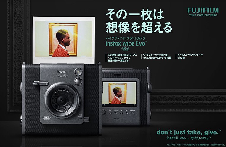 富士表示,WIDE Evo 是继 instax mini Evo 大获成功之后 Evo 系列的第二款机型,采用数码成像、宽幅相纸(尺寸 99mm×62mm,约为卡片式迷你胶片的两倍)输出。