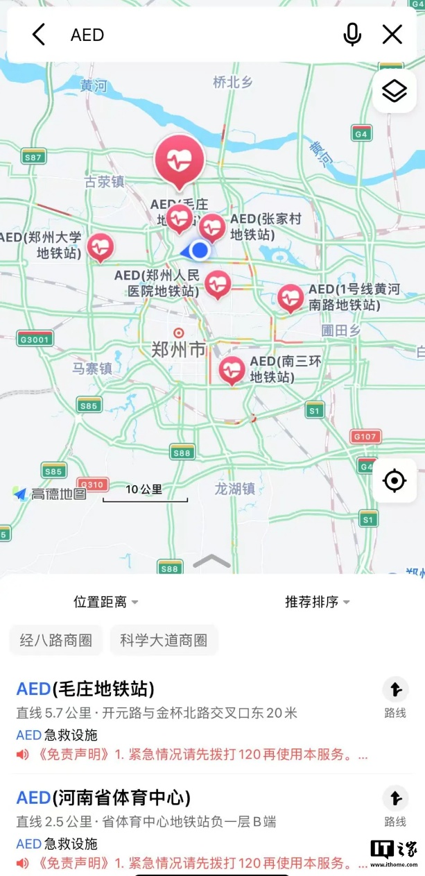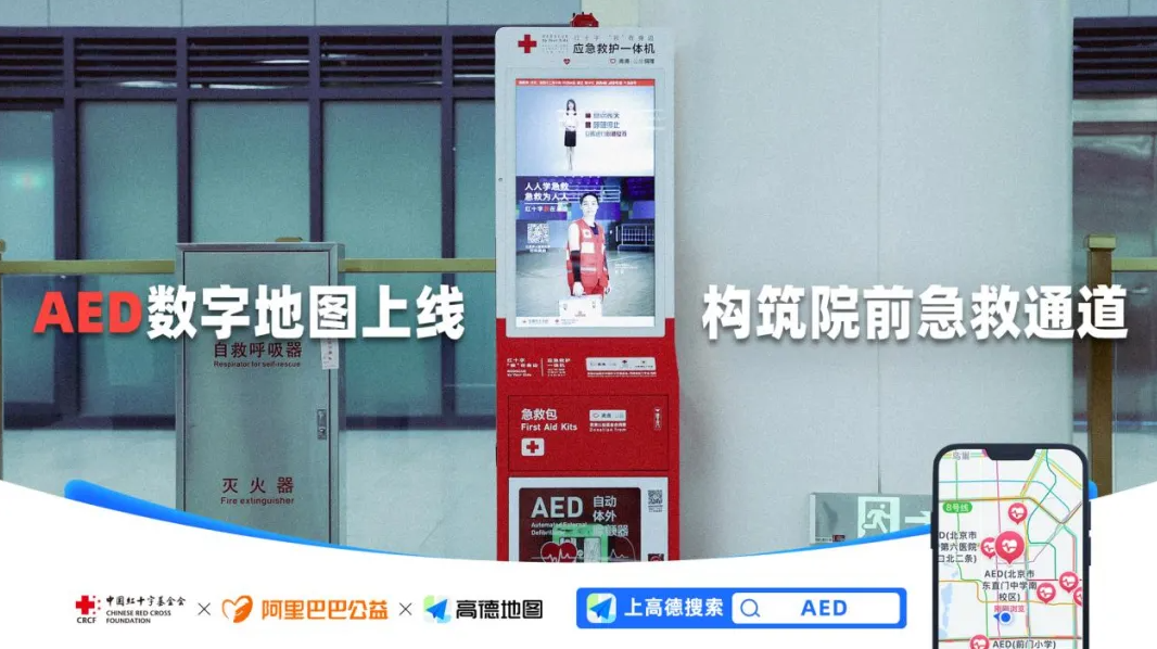 作为首批试点,中国红十字基金会在北京和河南省郑州市、洛阳市的 2000 多台 AED 设备位置信息,通过「红十字应急救护」小程序的推送,在高德地图上线。