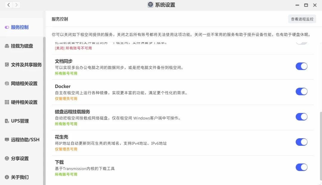 服务控制新增花生壳控制功能,可根据自身需求,自行决定是否关闭,实现更自主的网络设置与管理