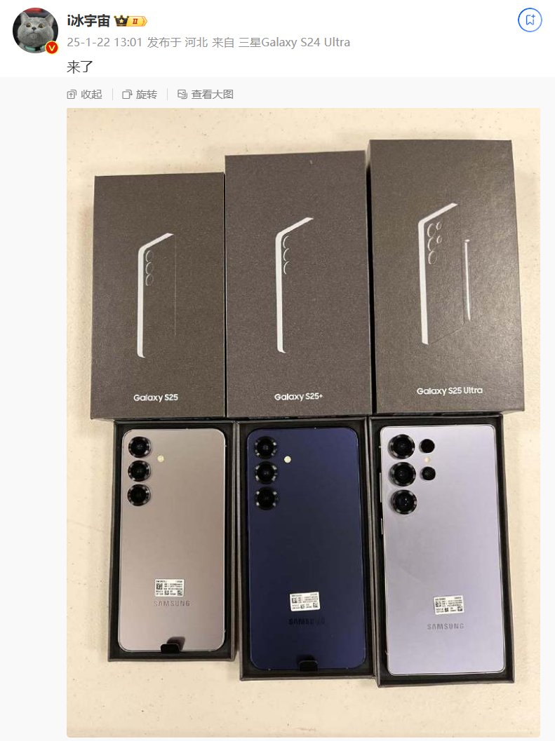 三星 Galaxy S25 系列手机配置、参数等信息已陆续曝光。博主 @i冰宇宙 今日还分享了三星 Galaxy S25 系列真机图,其中展示了 S25、S25+、S25 Ultra 三款机型。在三星 Galaxy S25 Ultra 手机的包装盒上印有手写笔配件的图案,预示新机将继续内置 S Pen 手写笔。