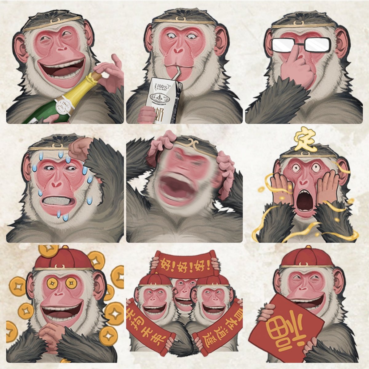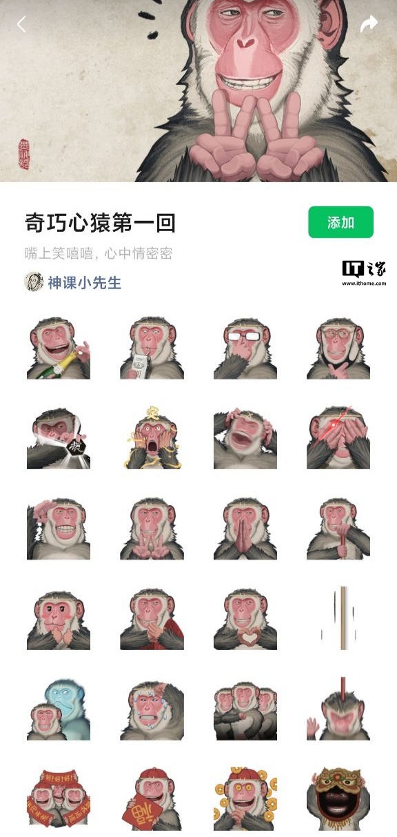【奇巧心猿】系列表情第一回,已上架微信表情包商城,请君免费自取。