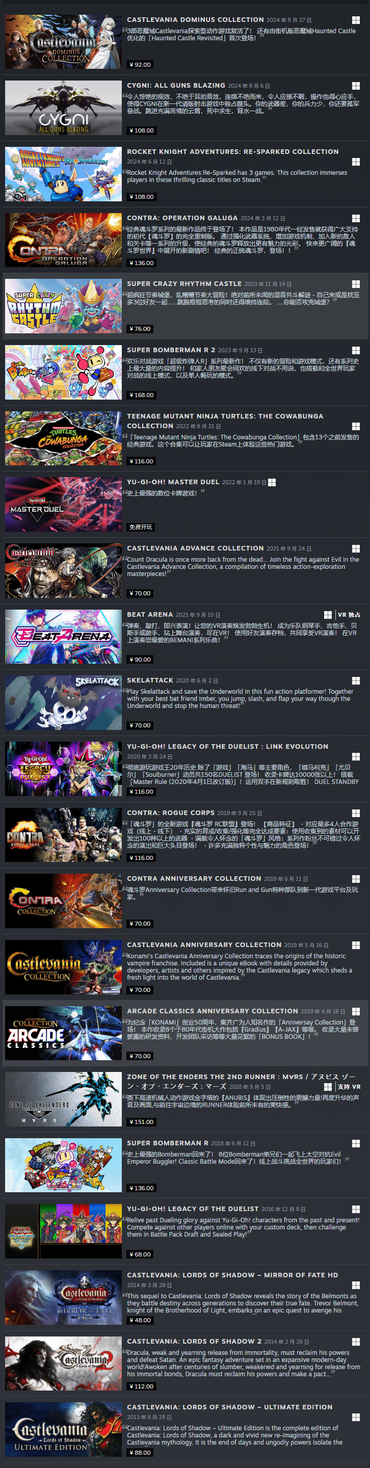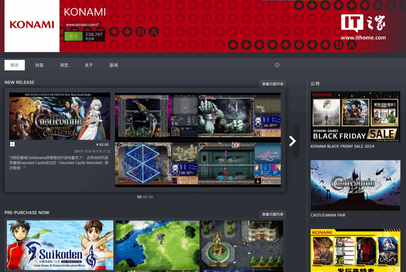 IT之家 1 月 22 日消息,今日,游戏开发商科乐美(Konami)再次为国区玩家解锁了一批新游戏,进一步丰富了其在 Steam 平台国区上的游戏阵容。