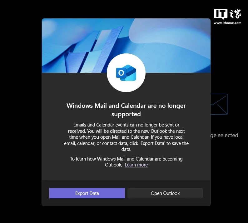 IT之家 1 月 23 日消息,据可靠消息来源向 Windows Latest 证实,微软已正式启动在 Windows 11 和 Windows 10 系统中逐步淘汰邮件和日历(Mail & Calendar)应用的进程。尽管用户目前仍可通过新版 Outlook 或某些 PowerShell 脚本打开该应用,但其功能已不再可用。