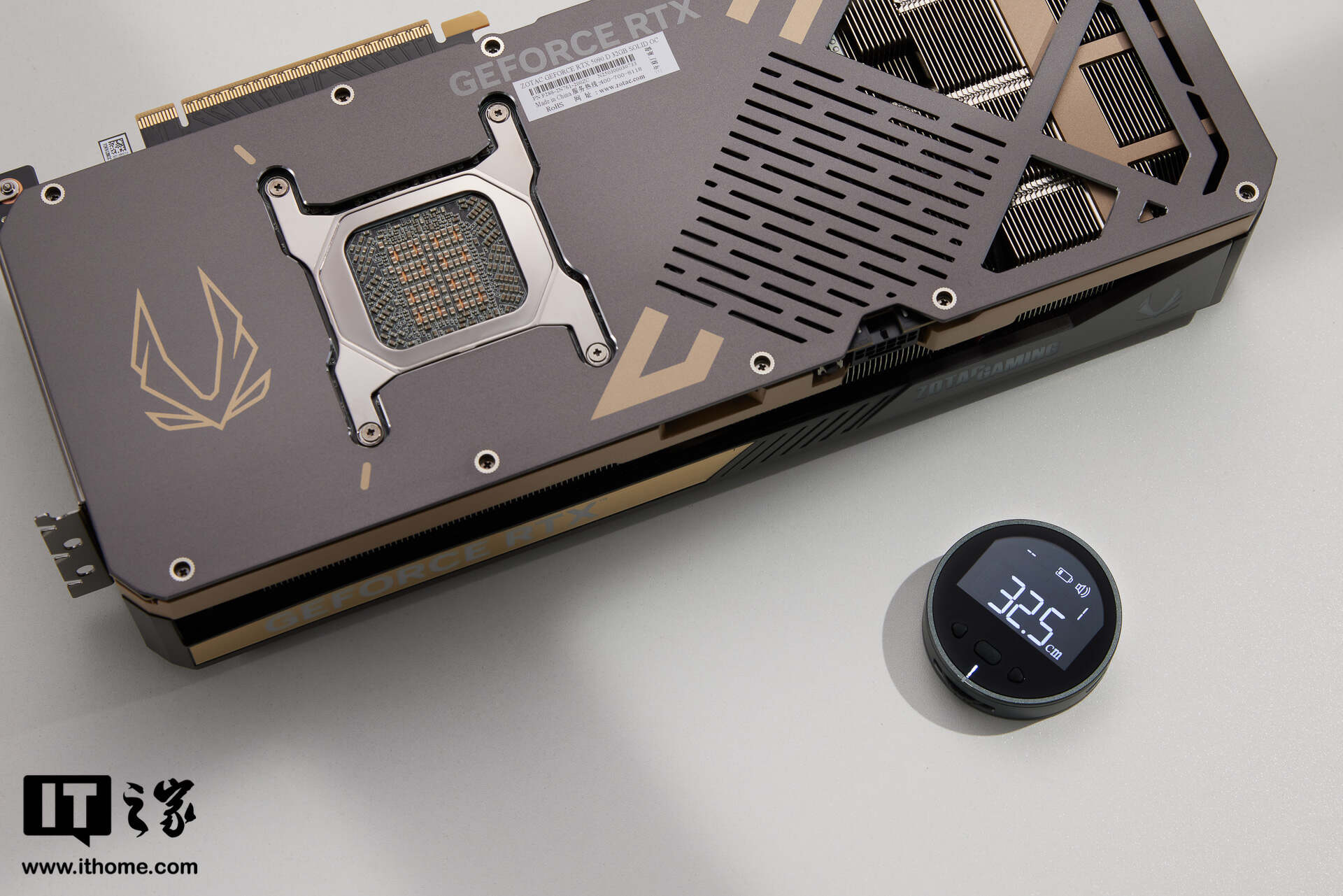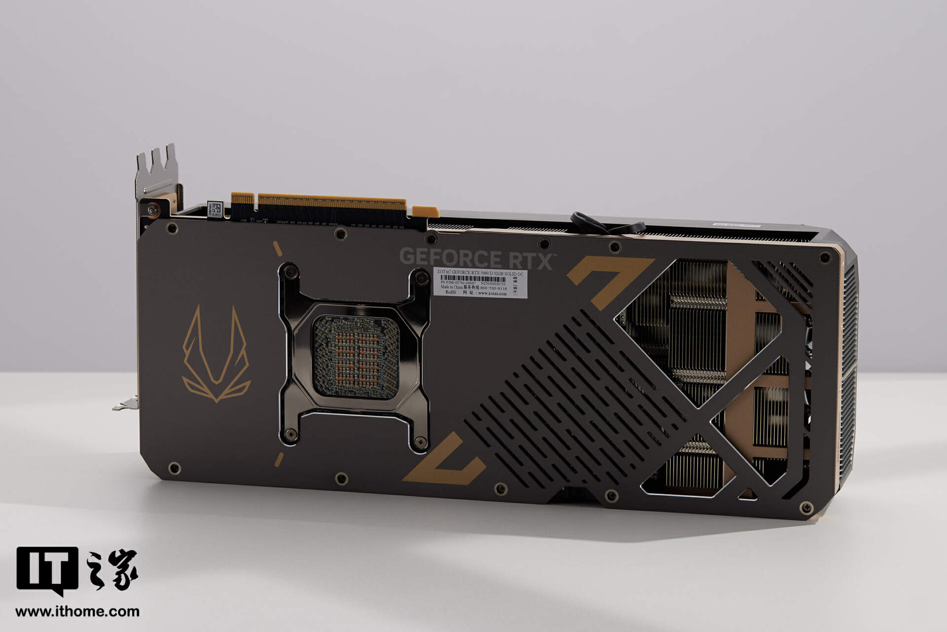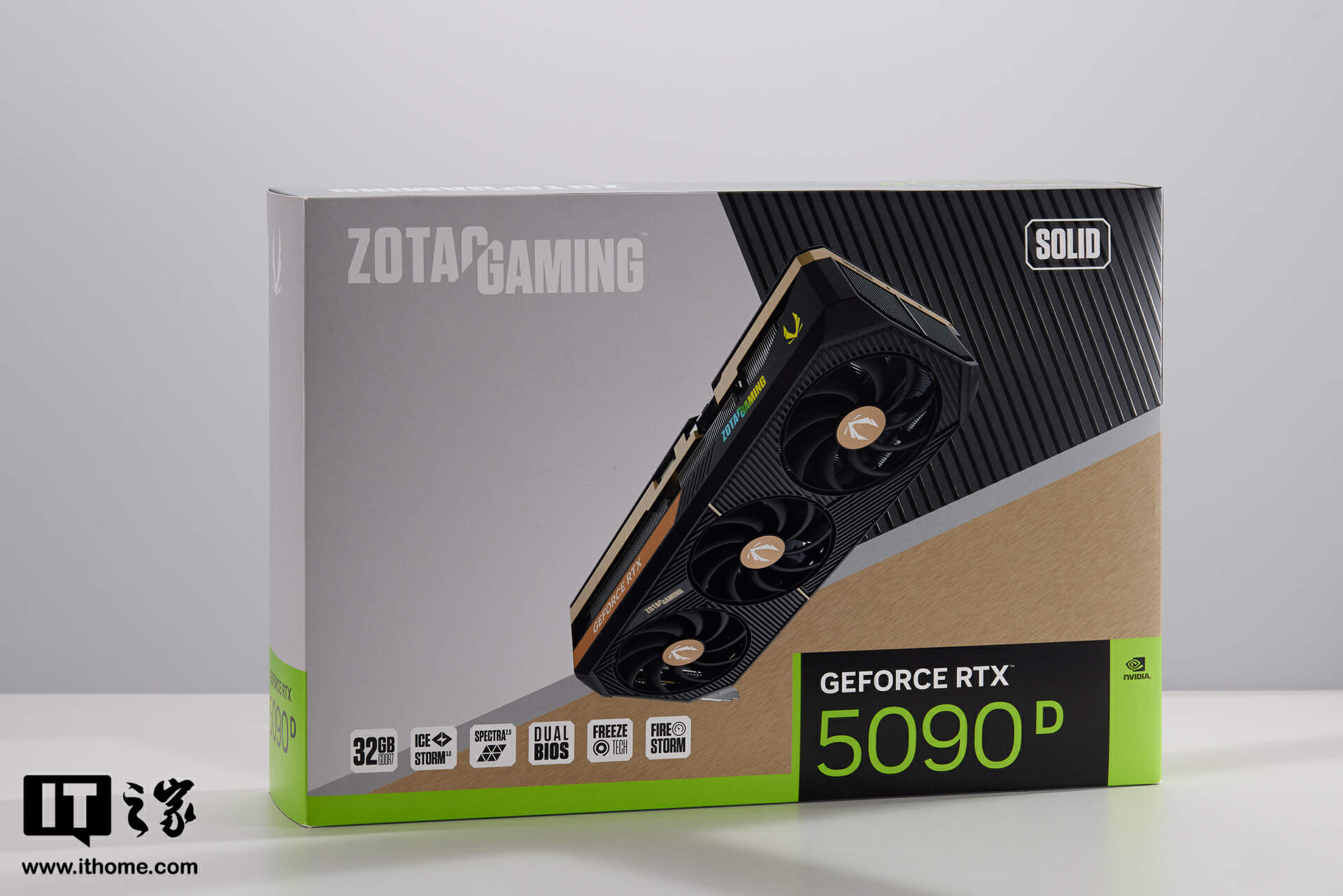 此次来到IT之家评测室的,是索泰 GEFORCE RTX 5090 D 32GB SOLID OC 显卡。