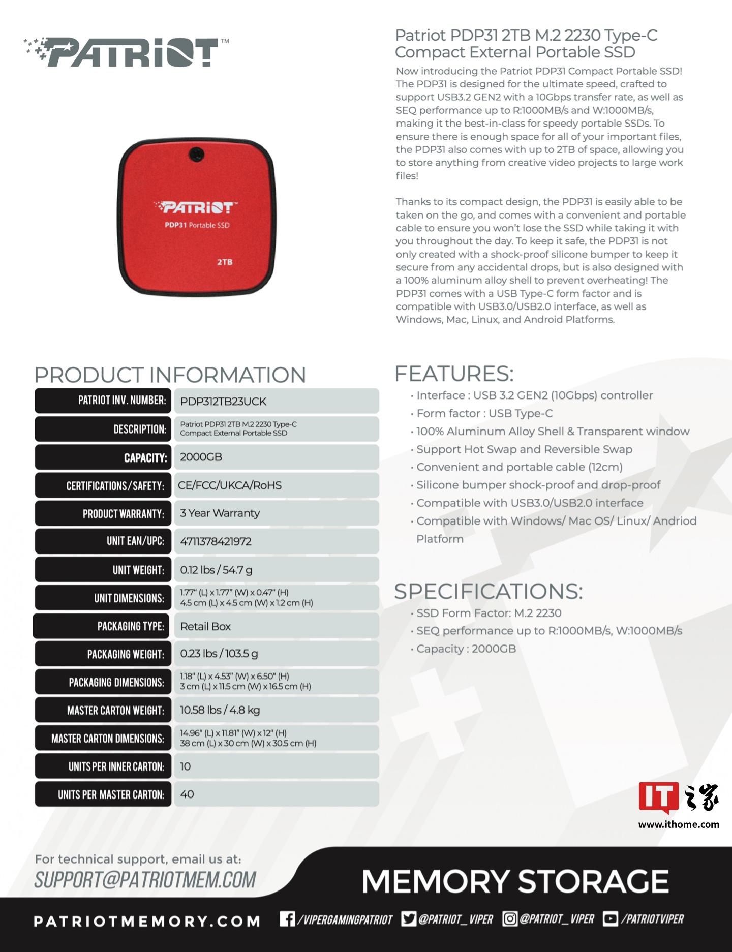 IT之家 1 月 25 日消息,博帝(Patriot)现已在海外推出一款型号为 PDP31 的移动硬盘,这款移动硬盘主打外观设计,整体造型小巧,不过目前官方暂未公布具体价格信息。