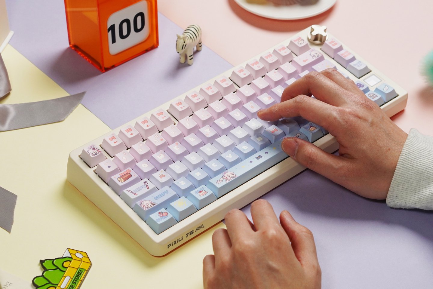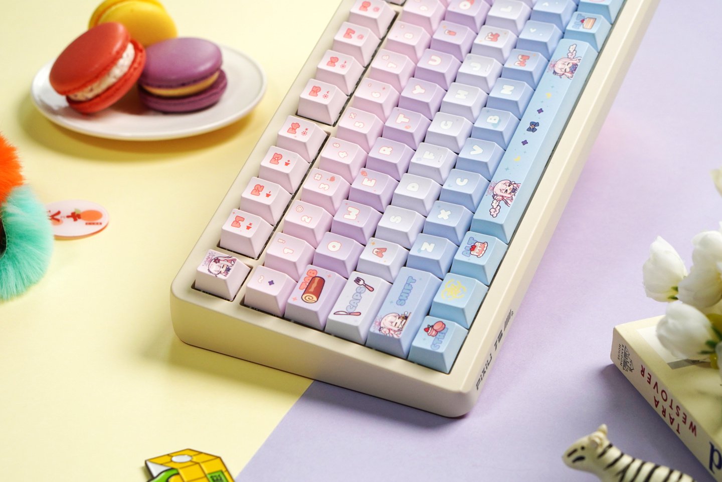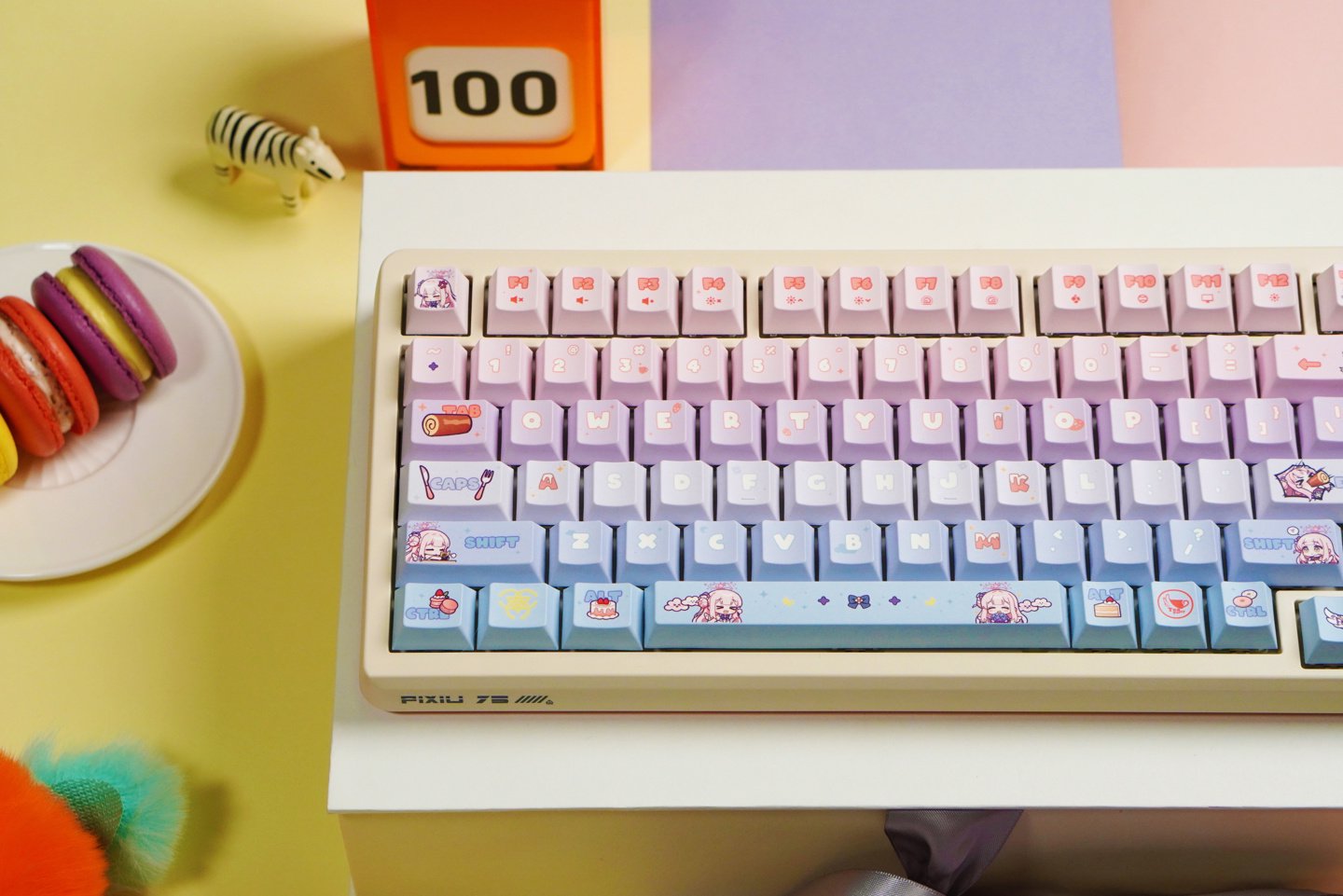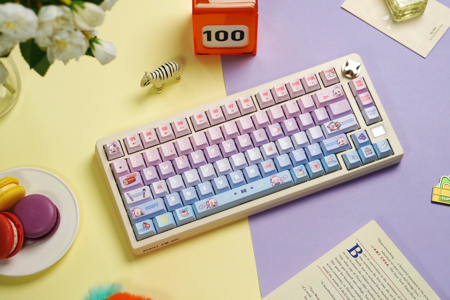 如图所示,这款键盘采用了“未花”主题设计,其键帽(双色注塑 PBT)目前仍在开发设计中。