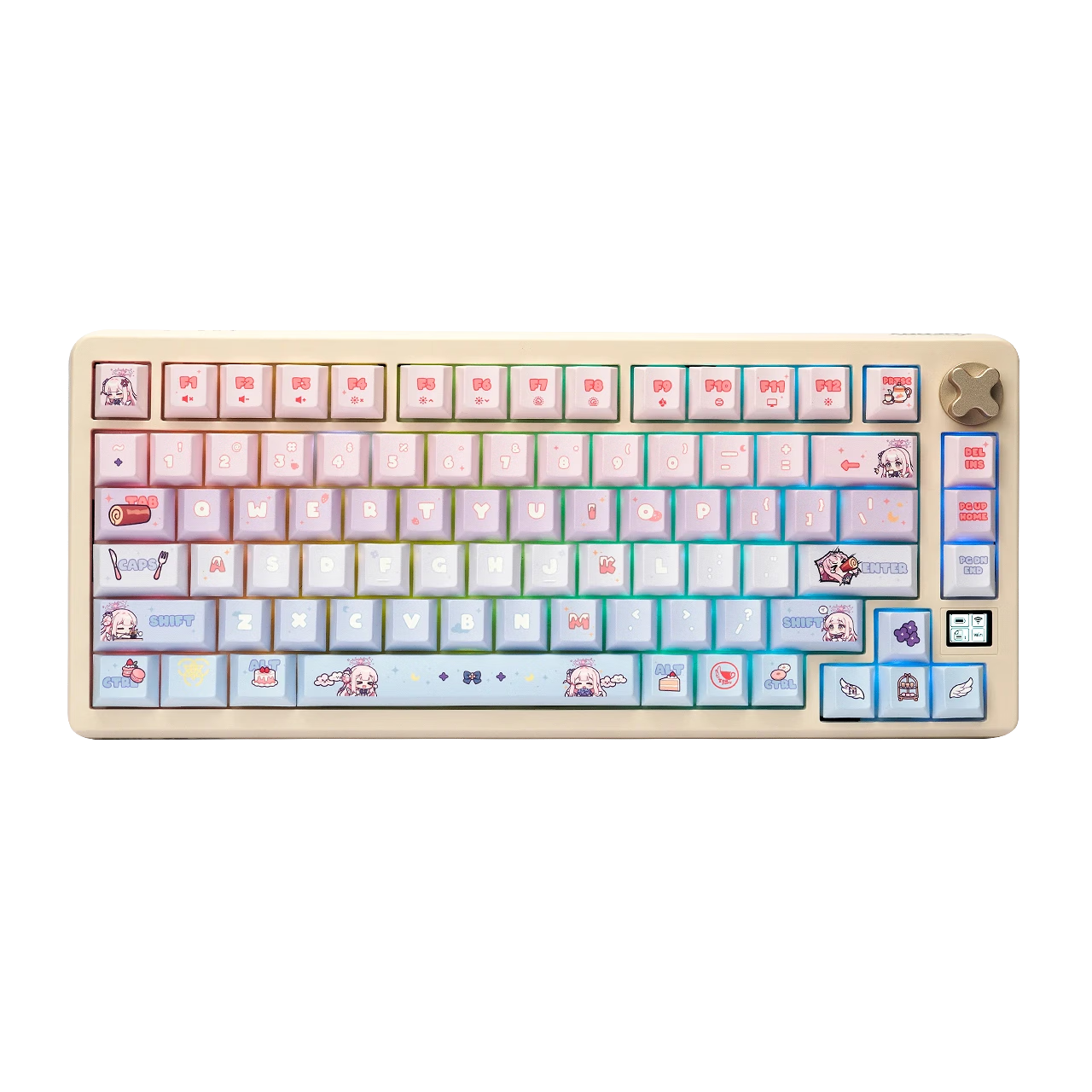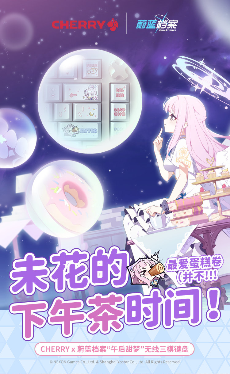 IT之家 1 月 26 日消息,樱桃中国本周推出了一款全新的 CHERRY《蔚蓝档案》联名的“午后甜梦”无线三模客制化机械键盘。