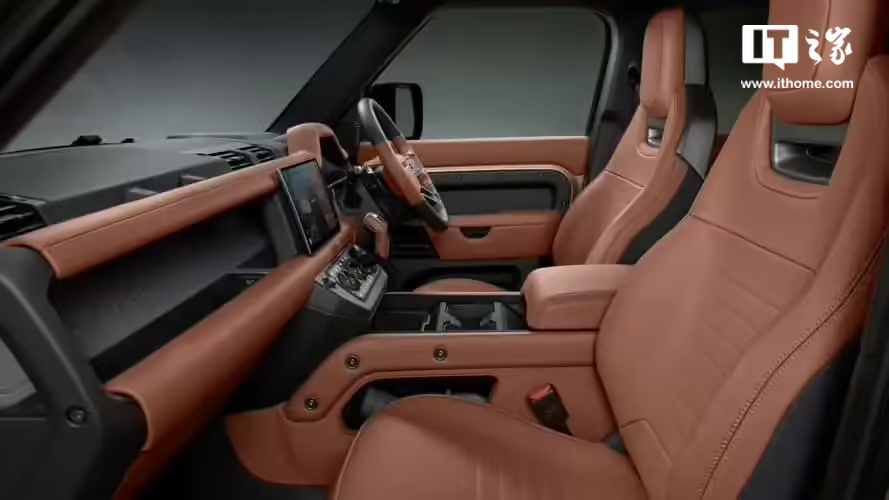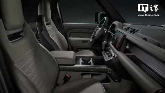 内饰方面,卫士 OCTA 延续了现款卫士的设计风格,但采用了全新的 UltrafabricsTM PU 内饰材料,比传统皮革轻 30%,进一步提升了车辆的轻量化水平。新车还配备了前排一体式运动座椅,座椅可与音乐联动振动。