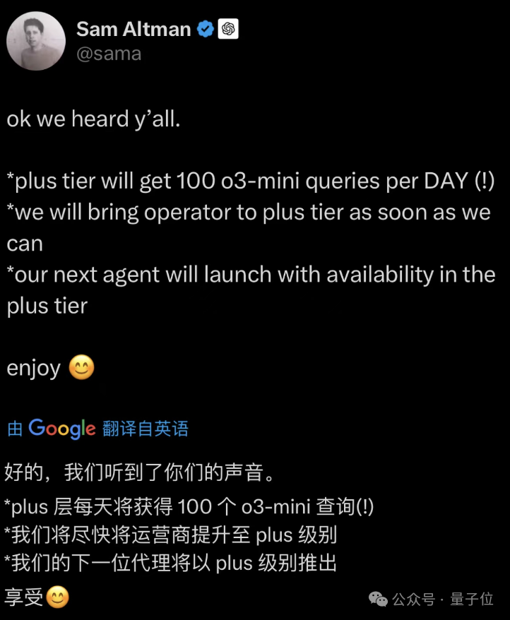 ChatGPT Plus 会员可以每天获得 100 条 o3-mini 查询。