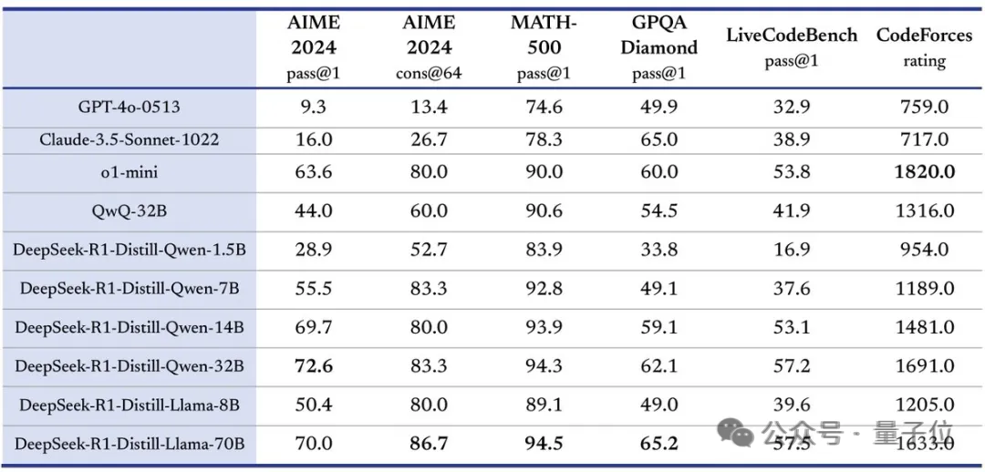 DeepSeek 开源了 6 个用 R1 蒸馏的小模型,其中蒸馏版 Qwen-1.5 甚至能在部分任务上超过 GPT-4o。