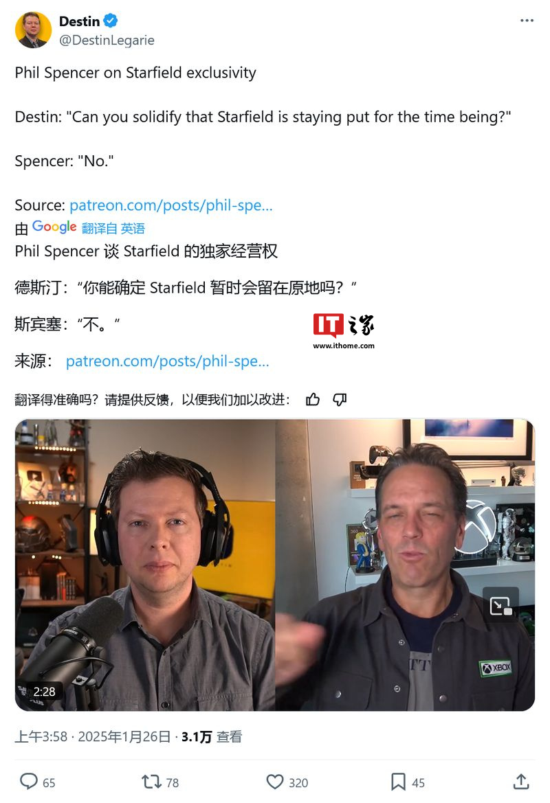 图源:Xbox斯宾塞明确表示,Xbox 未来不会对任何游戏设置平台限制,将允许旗下游戏登陆其他平台,以触达更多玩家并获得商业成功。以《星空》为例,该游戏将不会在 Xbox 平台设置独占窗口期。