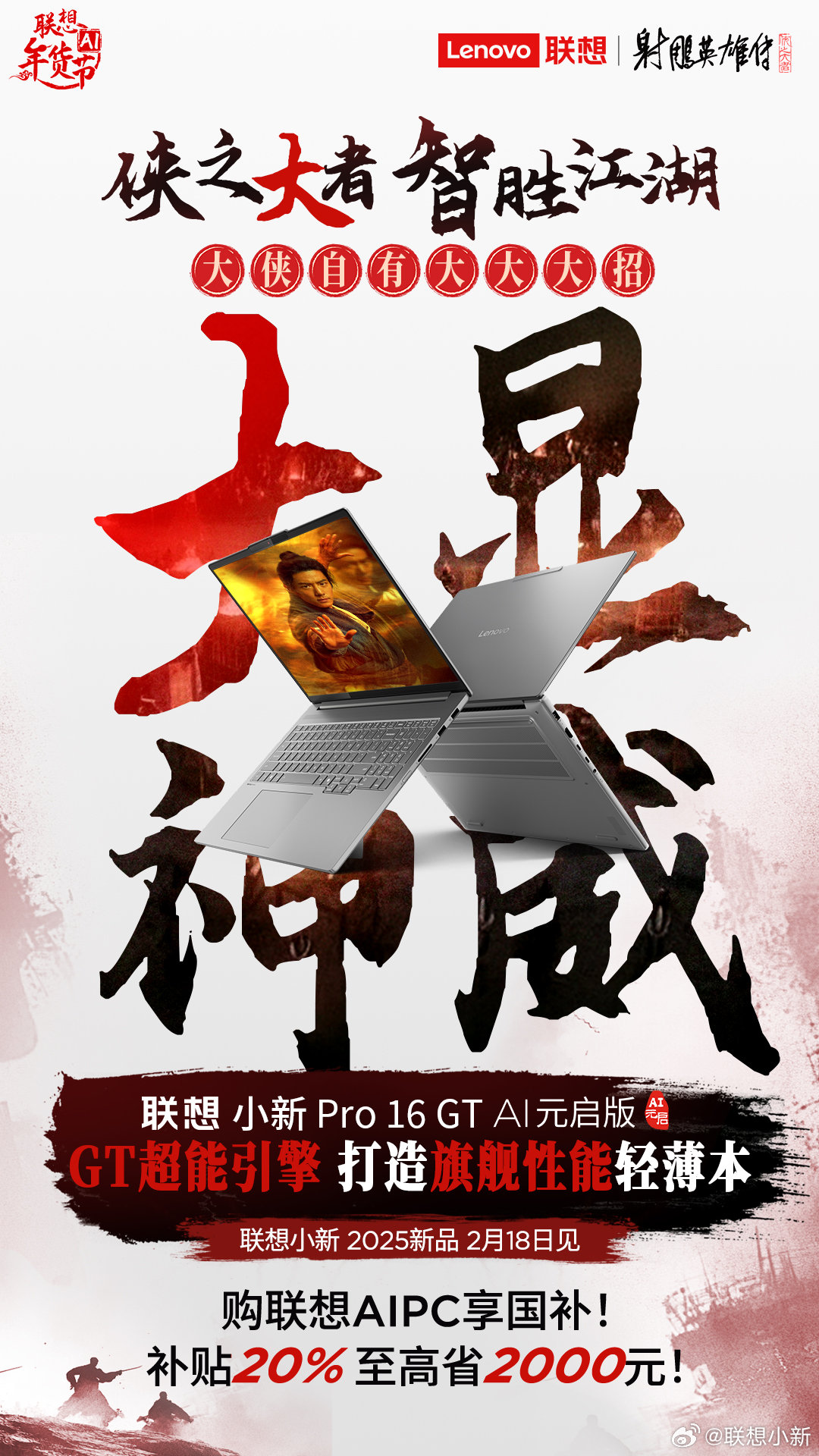 据IT之家此前报道,联想小新 Pro 系列新品官宣将于 2 月 18 日正式亮相,预计将包括本月初在 CES 2025 上展示的小新 Pro 14/16 GT AI 元启版 2025 旗舰性能轻薄本。