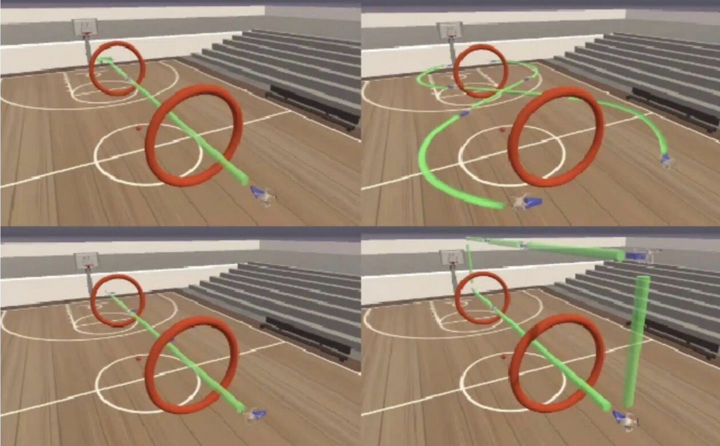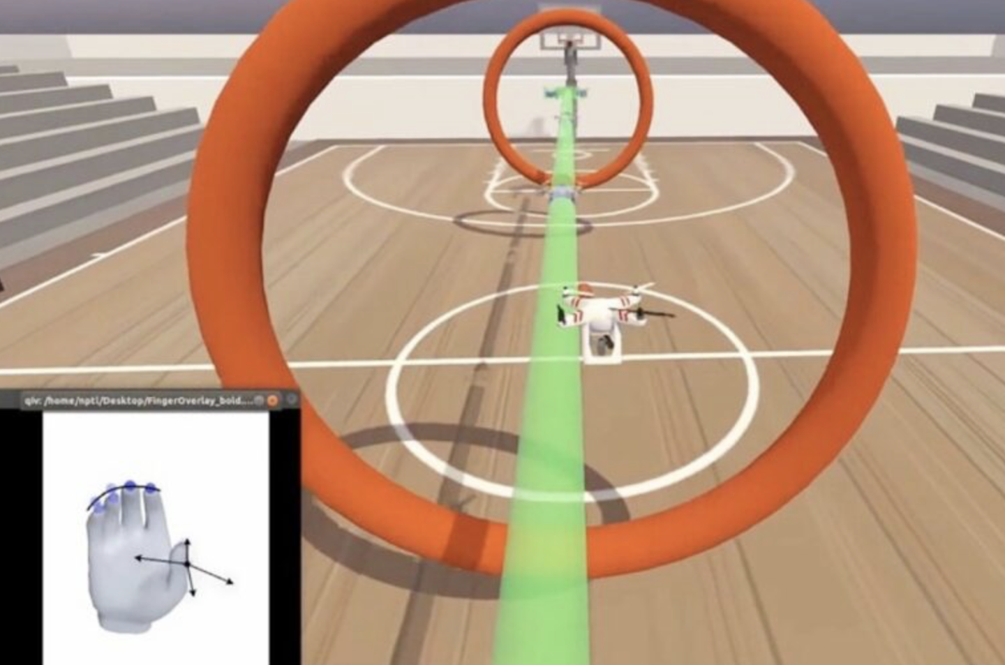 在实验初期,研究人员首先要求瘫痪男子移动手指,继而将大脑传输给手指的神经信号通过脑机接口映射至软件中,从而允许该男子在虚拟场景中操纵无人机穿越篮球场上的吊环。