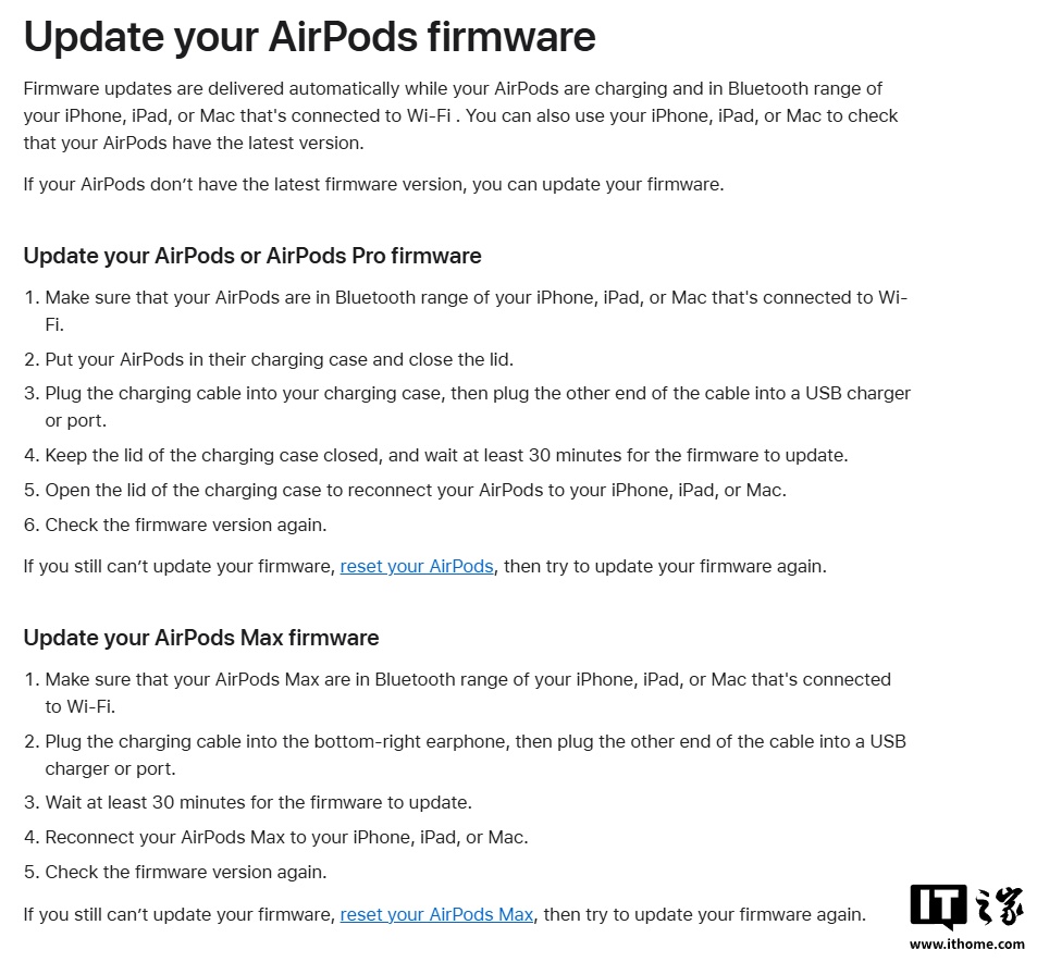 今日,这一状况终于迎来了改变,苹果刚刚更新了其 AirPods 固件支持页面,为用户提供了更为具体的指导说明。