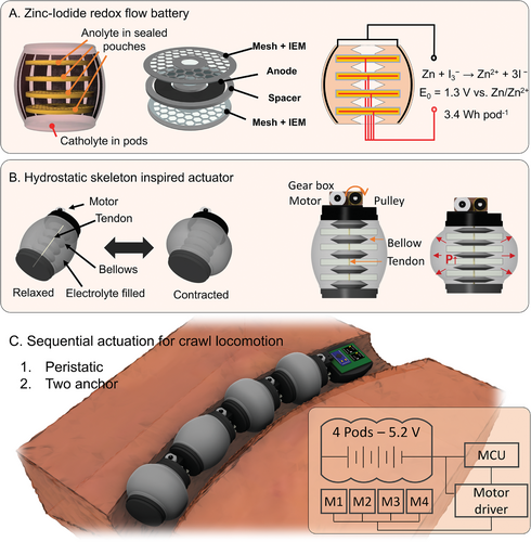 机器水母的氧化还原液流电池配备了一根肌腱,当肌腱弯曲成钟形时,机器人会向上推进;而当肌腱放松时,机器人则会下沉。实际运行的视频显示,其在水中游动时呈现出类似真实水母的动作。而模块化蠕虫机器人则由多个类似大型蛇形机器人中常见的模块化单元组成,每个单元都包含一个电机和一个肌腱驱动器,通过伸缩来实现运动。