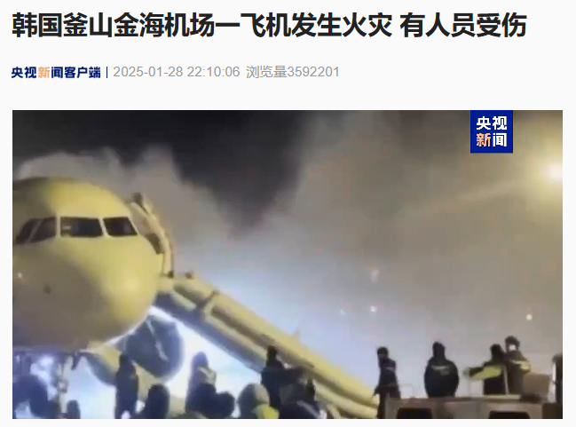 IT之家 1 月 29 日消息,据央视新闻报道,当地时间 1 月 28 日,韩国釜山金海国际机场一架釜山航空客机发生火灾。