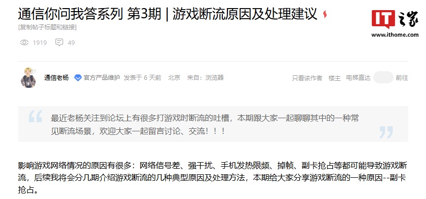 IT之家 1 月 29 日消息,荣耀官方产品维护 @通信老杨 本月(1 月 23 日)发布了游戏断流原因及处理建议,重点介绍了“副卡抢占”这一原因,并给出了相关处理方案。