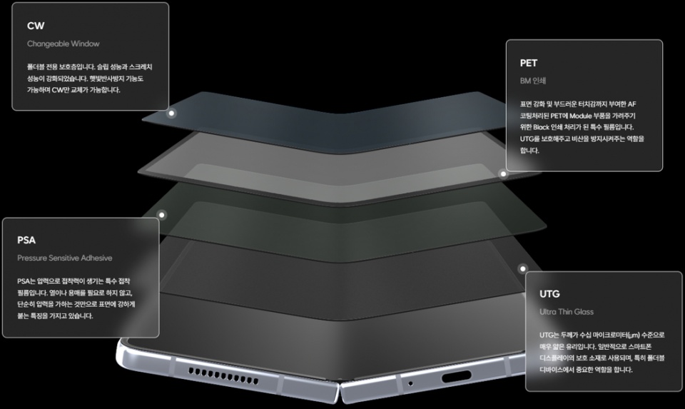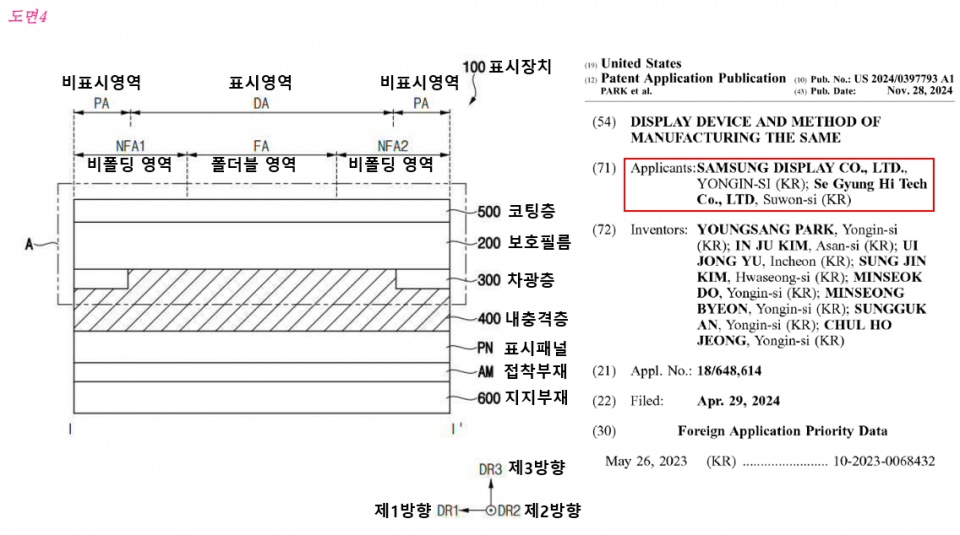 专利包含 Segyung 为三星提供的常规保护膜,其用于覆盖超薄保护玻璃(UTG)上的可折叠手机屏幕,但这次加入了一个新的抗冲击和遮光层。