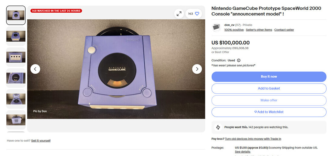 Donny Fillerup 正在 eBay 上以 10 万美元(IT之家备注:当前约 72.9 万元人民币)的高价出售这款主机。他在页面上写道,计划将这笔收入用于建设一个“游戏场所”,让来访者能感受到年轻时的快乐。这款主机并没有与其控制器一起出售,而控制器与标准的 GameCube 控制器相比也有显著不同。