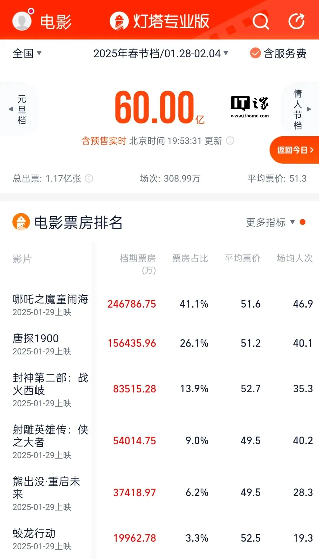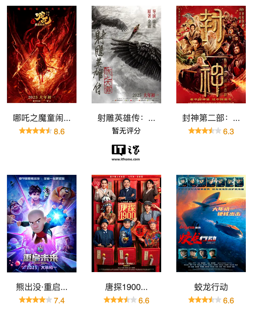 IT之家也期待 2025 年的春节档,在接下来的几天里,能不能让“史上最强春节档”的地位易主。