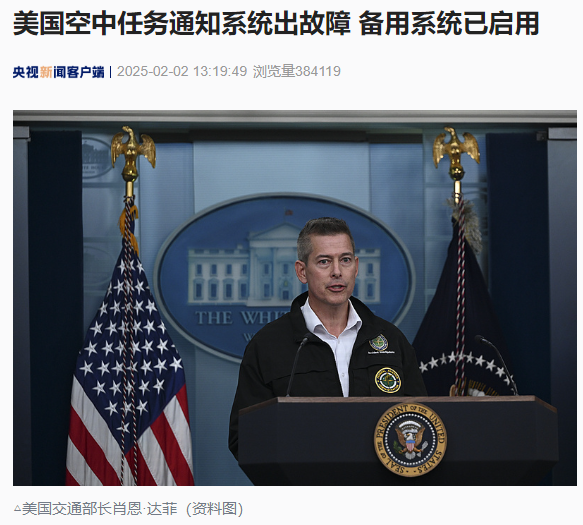 IT之家 2 月 2 日消息,据央视新闻报道,当地时间 2 月 1 日晚,美国交通部长肖恩・达菲通过社交媒体发布消息说,美国空中任务通知系统(NOTAM)暂时出现故障,备用系统已启用,目前对美国国家领空管理系统没有影响。