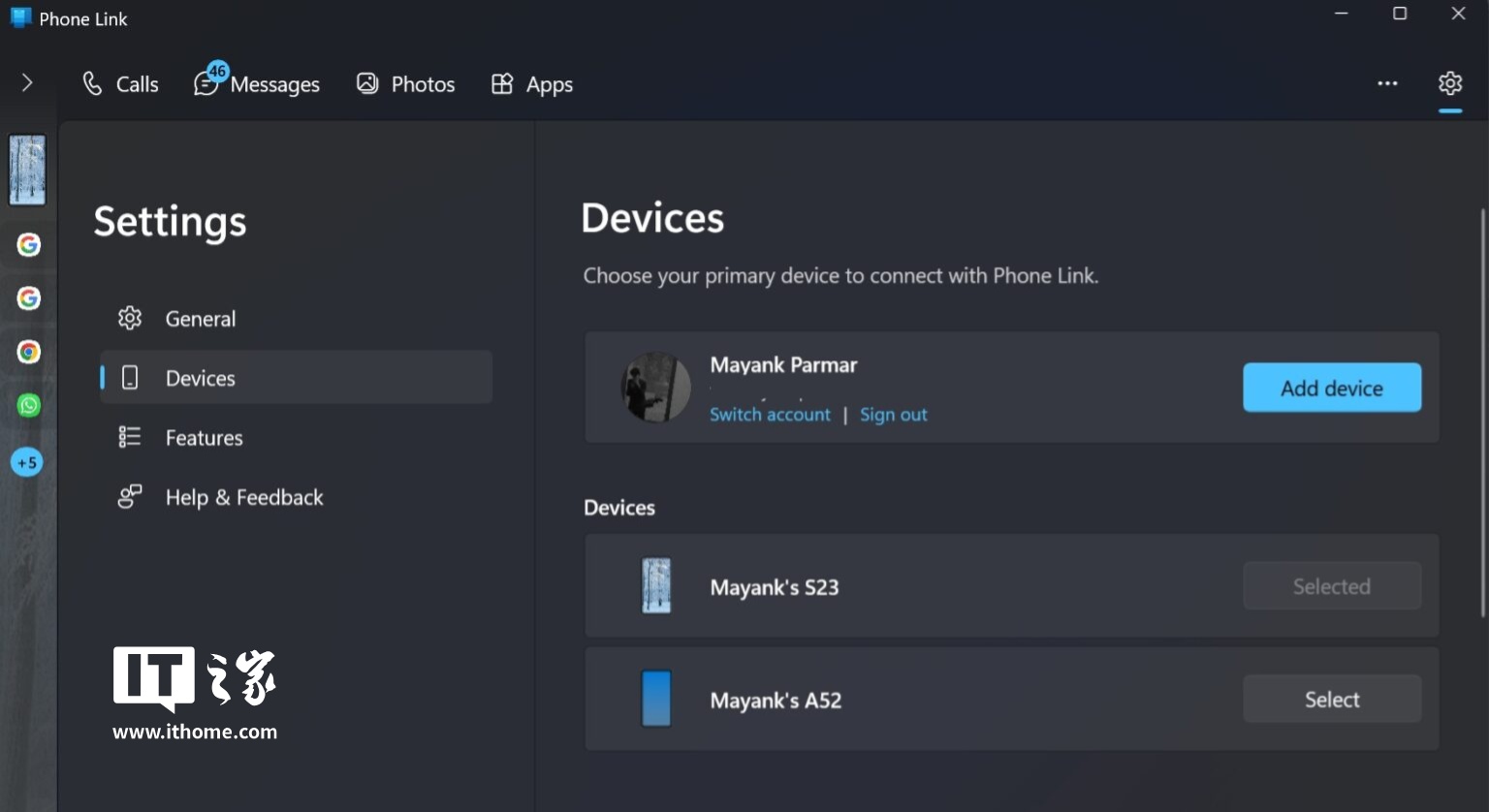 IT之家注意到,目前用户在 Phone Link 应用的设置中无法找到解绑手机的选项。即使在“设备”列表中能看到所有已连接的手机,也无法通过任何操作将其移除。用户虽然可以注销账户、添加新设备或切换账户,但无法直接移除不再需要的手机。